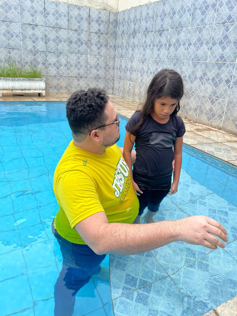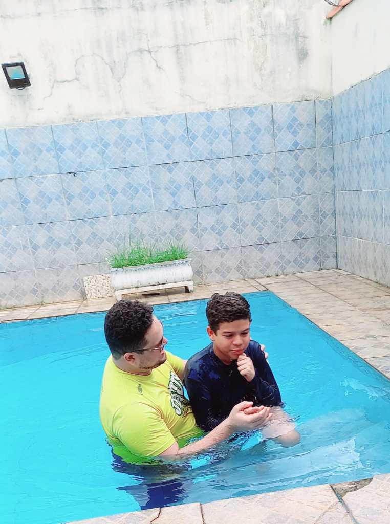 Em seguida, oramos mais uma vez ao Senhor, agradecendo por estarmos realizando a primeira cerimônia de batismo de nossa recém-organizada igreja. Em seguida, em obediência ao modelo deixado por Nosso Senhor Jesus Cristo, adentramos às águas e sepultamos pelo batismo em águas, em nome do Pai e do Filho e do Espírito Santo, aos irmãos Davi Lira, Débora Batista, Guilherme Nunes e Sophya de Sousa, cujas idades variam de 10 a 14 anos, sendo estes, frutos que estamos colhendo de um intenso e excelente trabalhado realizado pelo Departamento Infantil de nossa igreja.